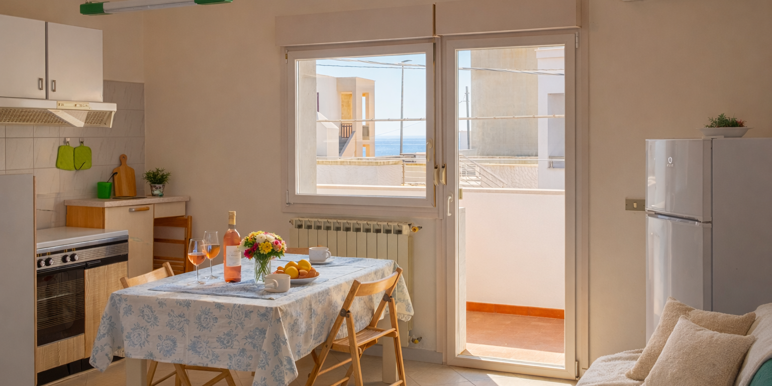 Alga Marina è un trilocale pensato per chi desidera una vacanza di mare autentica, fatta di semplicità e tranquillità. Gli ambienti sono spaziosi e luminosi, con una zona giorno accogliente e due camere ideali per famiglie o piccoli gruppi.